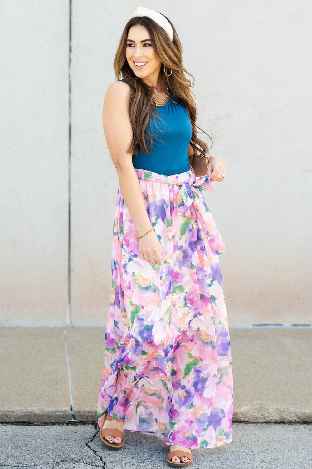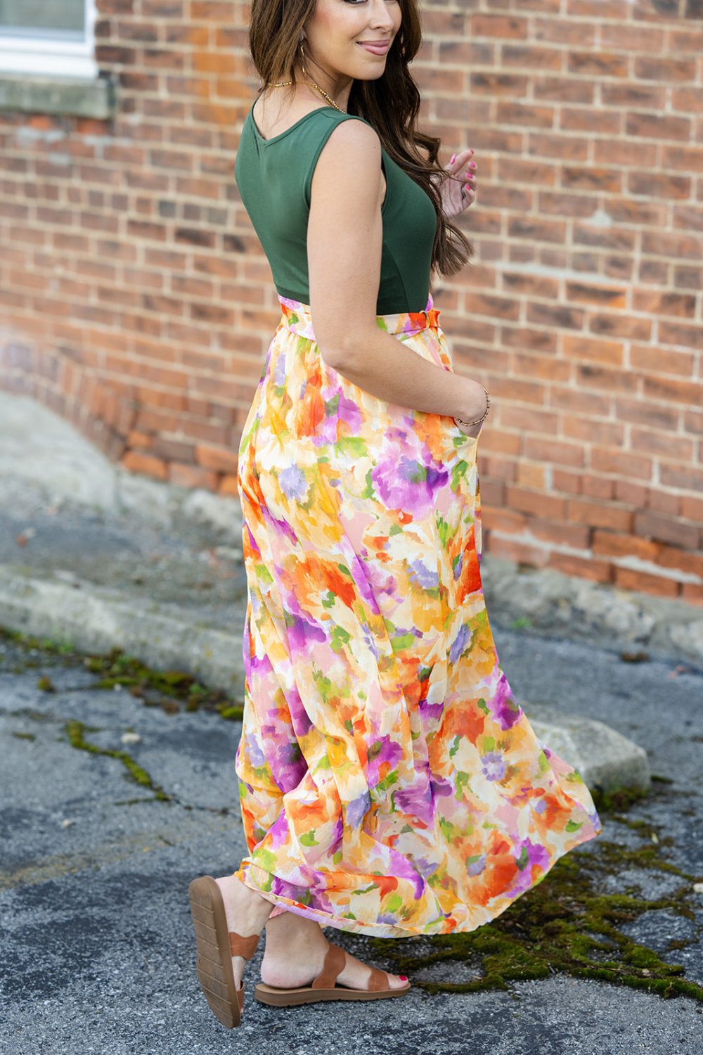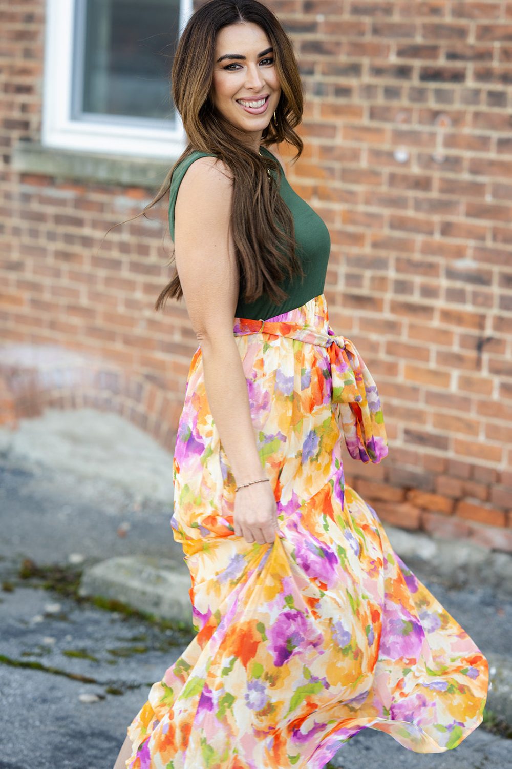 Bring on the warm weather with this bright, floral maxi dress! We love that this dress looks like it is a tank and a skirt paired together. Simply add your favorite accessories to take you anywhere from work, to church, to a wedding, or date night with ease! Chilly? Add a blazer, cardigan, or jacket to this for the cooler months! Wherever you wear this, you are sure to turn heads!